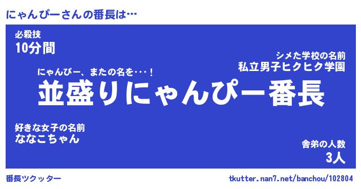 | 男性向けラノベタイトル風あだ名 | 『にゃんぴーの憂鬱』 |