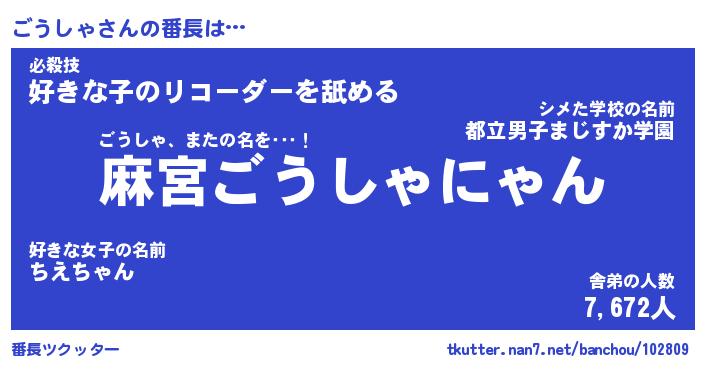 | 意味不明あだ名 | 『ペロリンごうしゃ』『永久保存ごうしゃ』 |