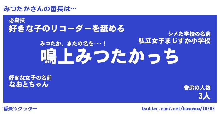| ヘコむあだ名 | 『みつにー』『つくし』『みつ太郎』 |