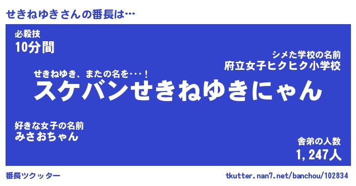 | ヘコむあだ名 | 『せきもー』『豆乳』『せき太郎』 |