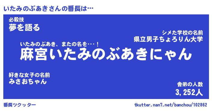 | ポケモン風あだ名 | 『イタチュウ』『イタミダネ』 |