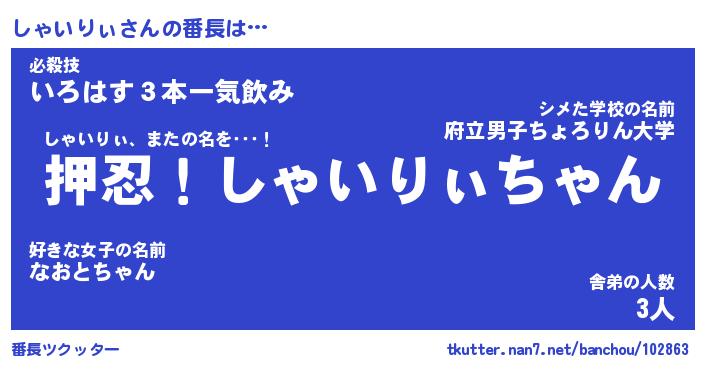 | 2回繰り返すあだ名 | 『しゃしゃ』『ししゃゃ』『おらおら』 |