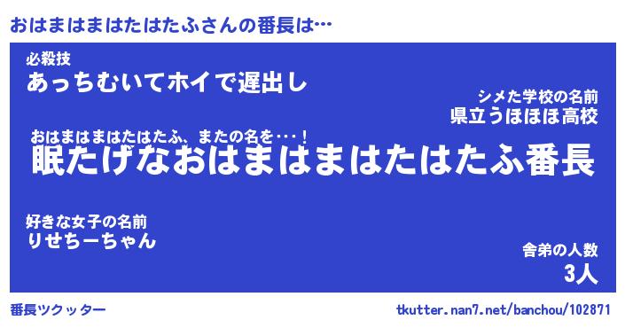 | 2回繰り返すあだ名 | 『おはおは』『おおはは』『おやおや』 |