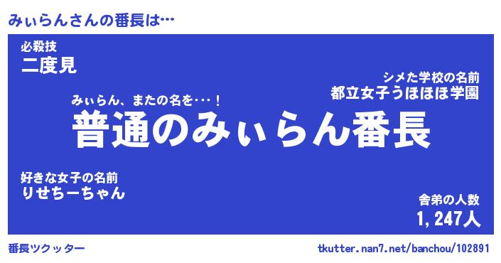 | 意味不明あだ名 | 『ペロリンみぃらん』『永久保存みぃらん』 |