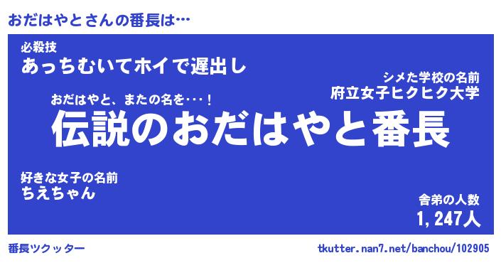 | 肩書あだ名 | 『おだはやと店長』『おだはやと総理大臣』 |