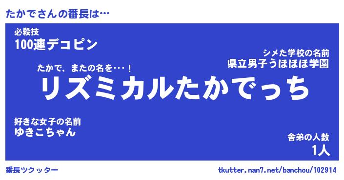 | 意味不明あだ名 | 『ペロリンたかで』『たかでフォーエバー』 |
