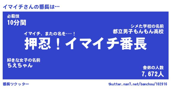 | 意味不明あだ名 | 『ペロリンイマイチ』『永久保存イマイチ』 |