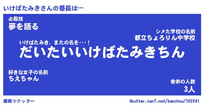 | 肩書あだ名 | 『いけばたみき店長』『いけばたみき教頭』 |