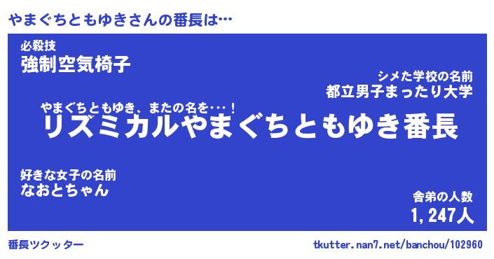 | 伝説のあだ名 | 『伝説のスナイパーやまぐちともゆき』 |