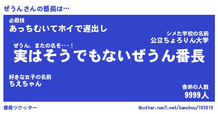 | ヒーロー風カッコイイあだ名 | 『スーパーゼウン』『ウルトラぜうんマン』 |