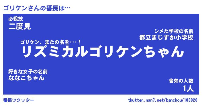 | 男性向けラノベタイトル風あだ名 | 『ゴリケンの憂鬱』 |