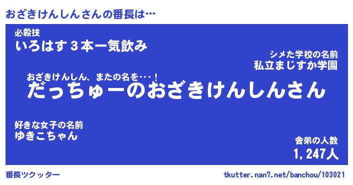 | 男性向けラノベタイトル風あだ名 | 『おざきけんしんの憂鬱』 |