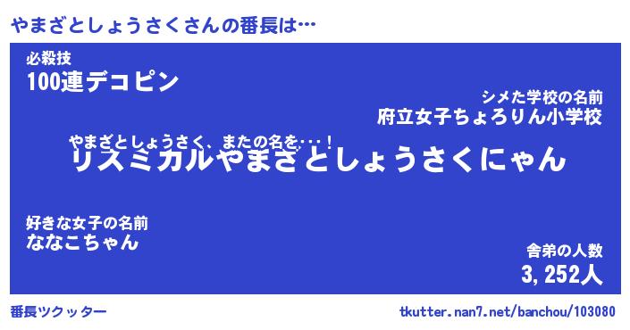| 2回繰り返すあだ名 | 『やまやま』『ややまま』『ぬめぬめ』 |