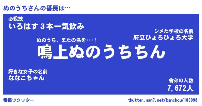 | 意味不明あだ名 | 『ペロリンぬのうち』『永久保存ぬのうち』 |