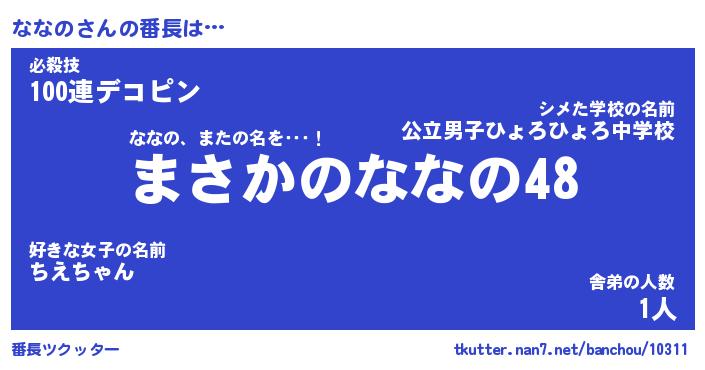 | ヘコむあだ名 | 『ななもー』『なまこ酢』『ななっ子』 |