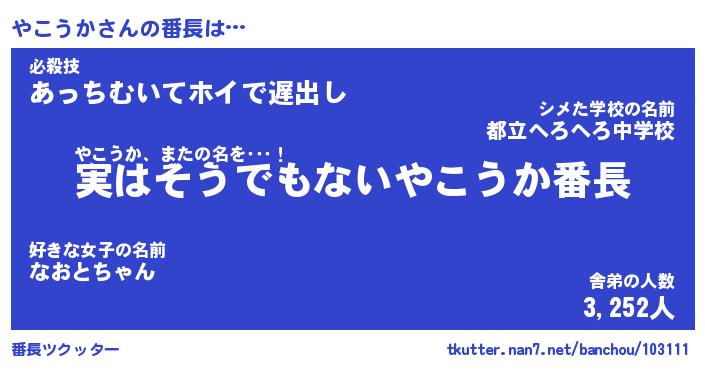 | ピコ太郎風あだ名 | 『ヤコ四郎』『ピヤ五郎』『ヤコ史郎』 |