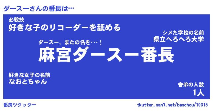 | 意味不明あだ名 | 『ペロリンダースー』『永久保存ダースー』 |