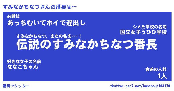 | 伝説のあだ名 | 『伝説のスナイパーすみなかちなつ』 |