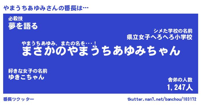 | 肩書あだ名 | 『やまうちあゆみ御曹司』 |