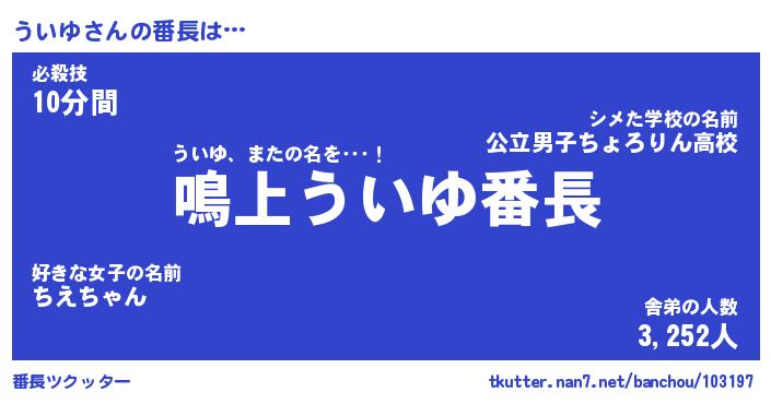 | ヘコむあだ名 | 『ういもー』『牛乳』『うい太郎』 |