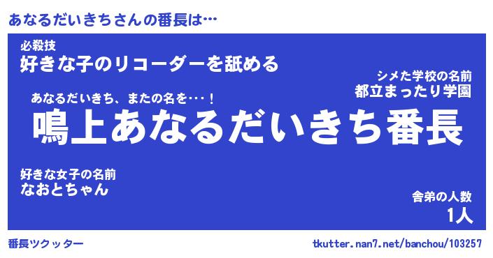 | 欧米人風あだ名 | 『マイケルあなるだいきち』 |