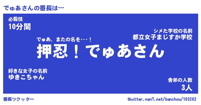 | 2回繰り返すあだ名 | 『でゅでゅ』『ででゅゅ』『おたおた』 |