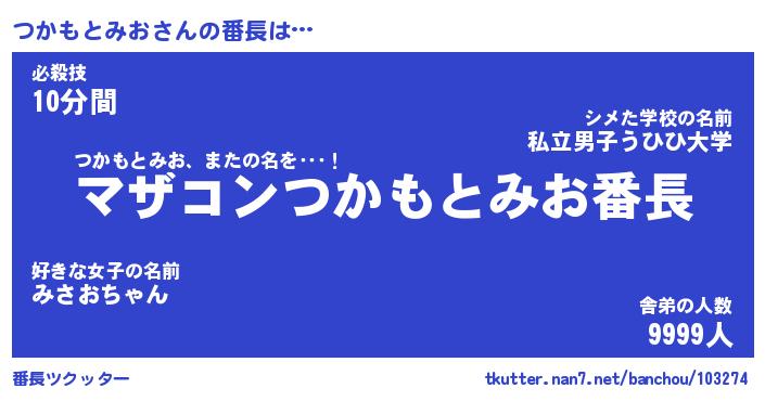 | ヒーロー風カッコイイあだ名 | 『スーパーツカモトミオ』『天弓騎士ツカ』 |