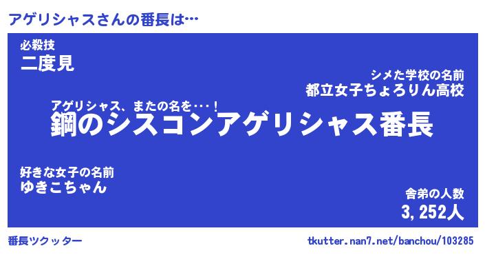 | ファンタジー風あだ名 | 『アゲフェル』『ファントムアゲス』 |
