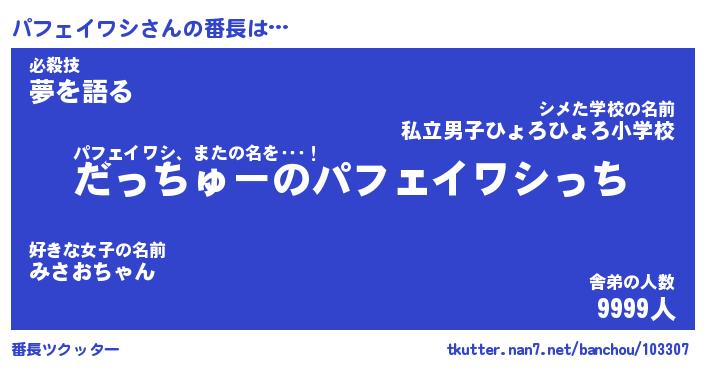 | 肩書あだ名 | 『パフェイワシ店長』『パフェイワシ班長』 |
