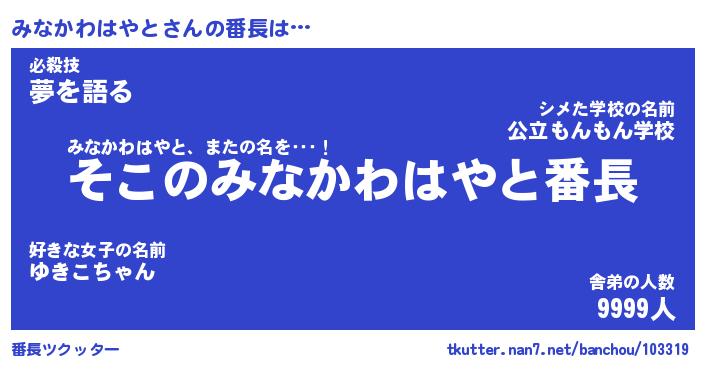 | 肩書あだ名 | 『みなかわはやと店長』 |