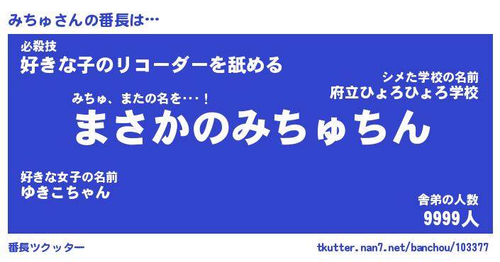 | 肩書あだ名 | 『みちゅ店長』『みちゅ総理大臣』 |