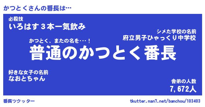 | 意味不明あだ名 | 『ペロリンかつとく』『永久保存かつとく』 |