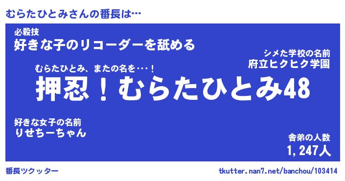 | 伝説のあだ名 | 『封印されしスナイパーむらたひとみ』 |