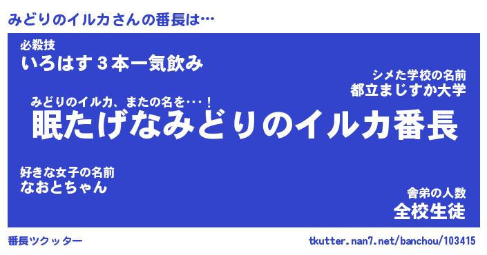 | 伝説のあだ名 | 『封印されしスナイパーみどりのイルカ』 |