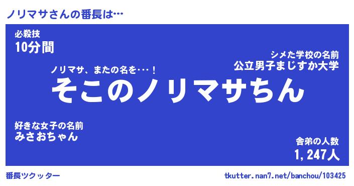 | 意味不明あだ名 | 『ペロリンノリマサ』『永久保存ノリマサ』 |