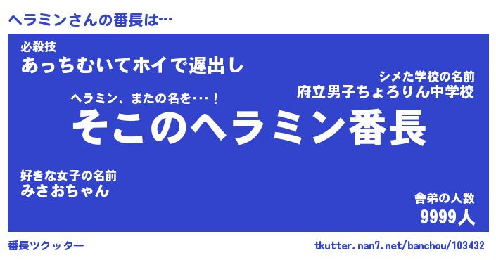 | ファンタジー風あだ名 | 『ヘラフェル』『エターナルヘラミンー』 |