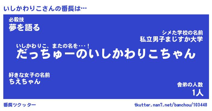 | 伝説のあだ名 | 『伝説のスナイパーいしかわりこ』 |
