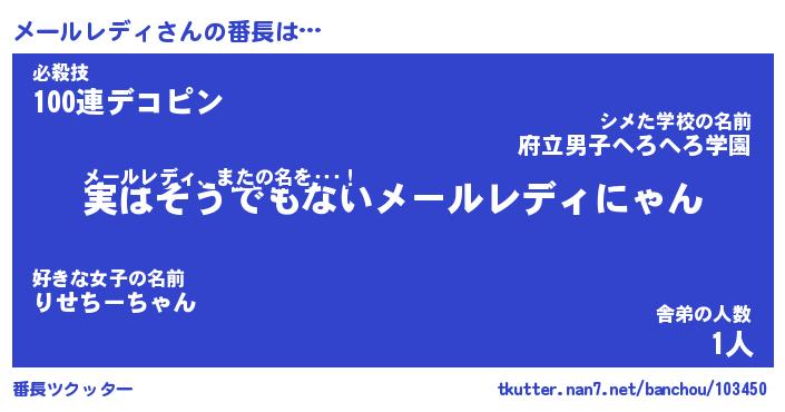 | 意味不明あだ名 | 『ペロリンメールレディ』 |