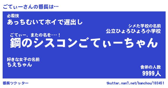 | 伝説のあだ名 | 『封印されし竜騎士ごてぃー』 |