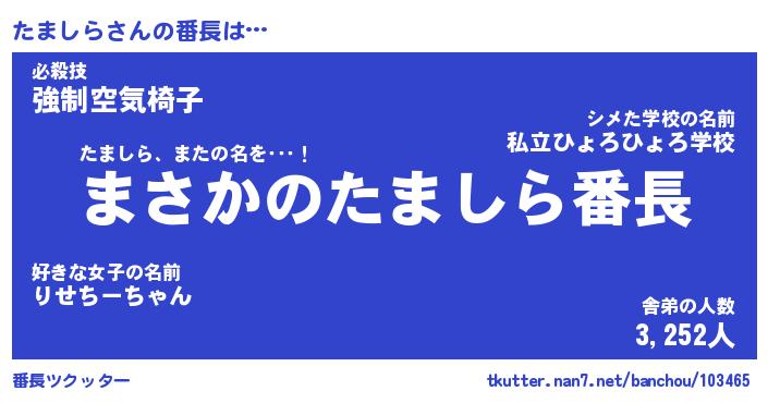 | 肩書あだ名 | 『たましらCEO』『たましら総理大臣』 |