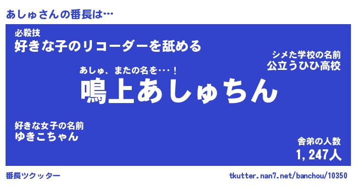 | 伝説のあだ名 | 『封印されしスナイパーあしゅ』 |