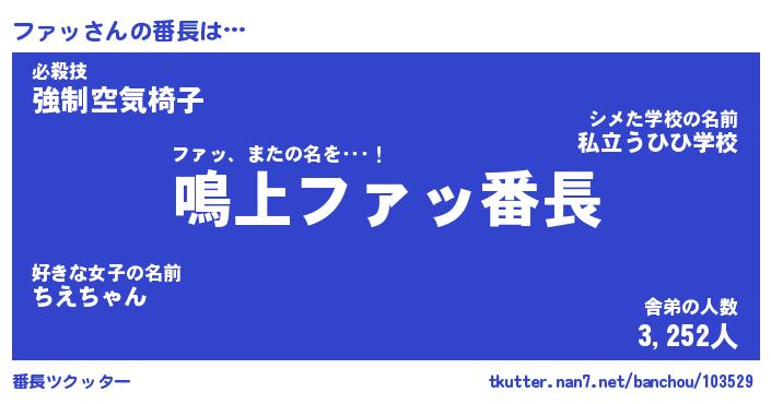 | 2回繰り返すあだ名 | 『ファファ』『フファァ』『うねうね』 |