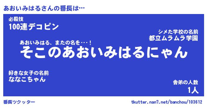 | ヘコむあだ名 | 『あおにゅー』『つくし』『あおお』 |