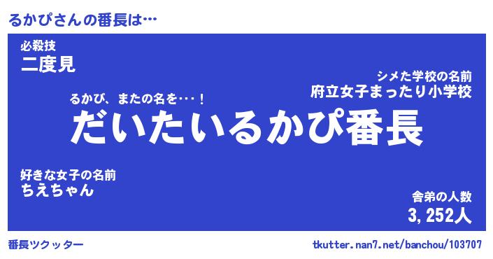 | 2回繰り返すあだ名 | 『るかるか』『るるかか』『こんこん』 |