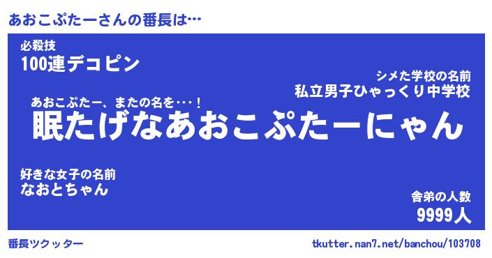 | 伝説のあだ名 | 『封印されしスナイパーあおこぷたー』 |
