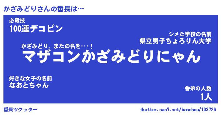 | ヘコむあだ名 | 『かざもー』『つくし』『かざぷりん』 |