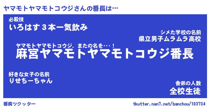 | 欧米人風あだ名 | 『マイケルヤマモトヤマモトコウジ』 |