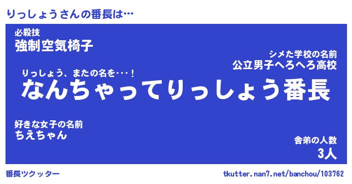 | 男性向けラノベタイトル風あだ名 | 『りっしょうの憂鬱』 |