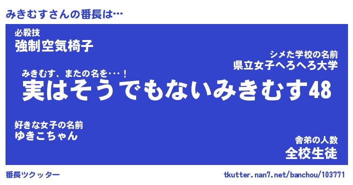 | 肩書あだ名 | 『みきむす社長令嬢』『みきむす総理大臣』 |