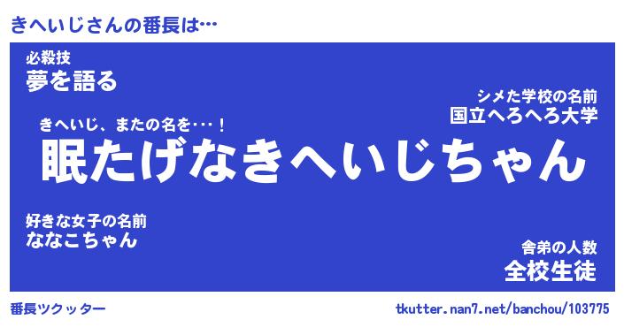 | 意味不明あだ名 | 『ペロリンきへいじ』『永久保存きへいじ』 |